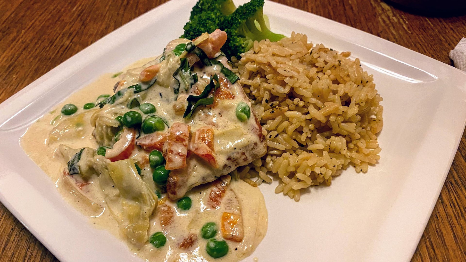 I served our version of Tuscan Salmon with rice to soak up the creamy sauce, but pasta would be absolutely amazing, too.