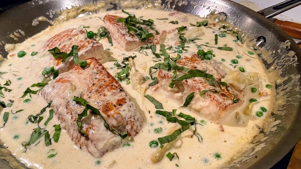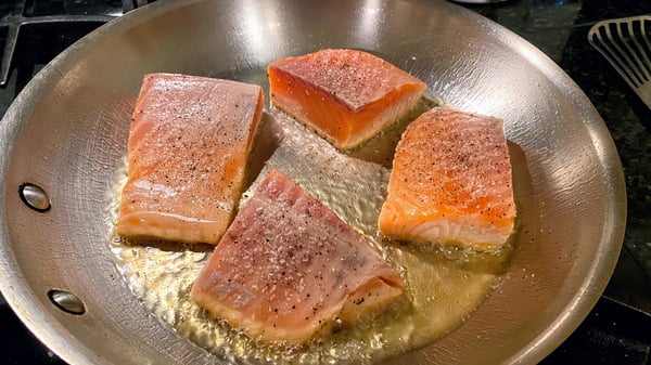 6. Return the salmon to the pan, and cook until heated through and cooked to your liking. Note: An internal temperature of medium is ideal for salmon.