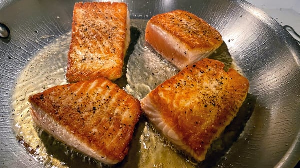 Looking to learn the process of searing fish? Join us for our Virtual Keto Cooking Demo or our Virtual Date Night Aphrodisiacs classes for a firsthand experience at how to properly sear salmon. We’ll show you all of the tips and tricks, so you can successfully make this delicious recipe at home!