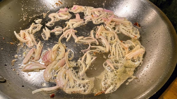- Return the pan to medium heat, and add the butter. Gently sauté the shallots or onions until softened, 2 to 3 minutes. Add the garlic, and cook an additional 30 seconds.