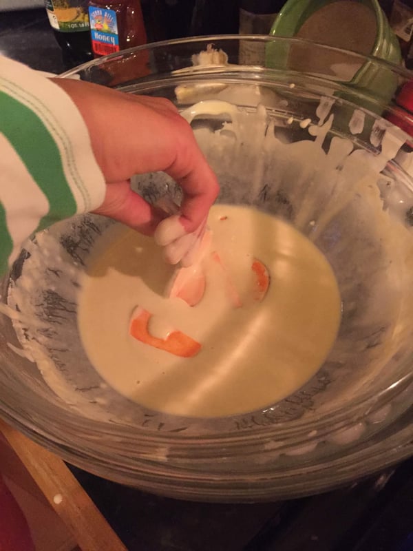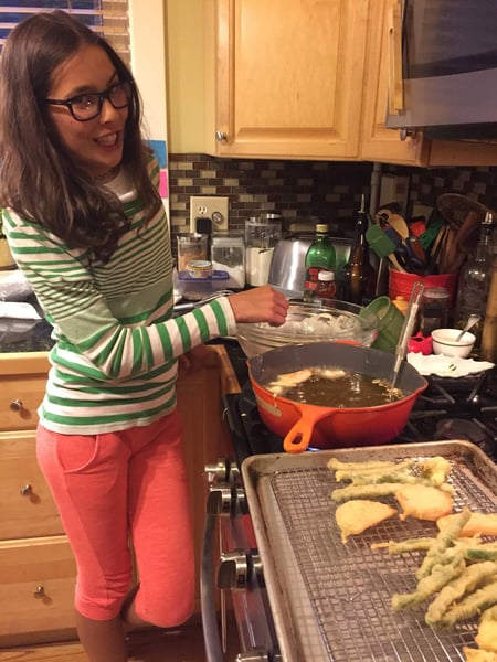 I recruited my daughter, Delilah, to be my sous chef for this task, so the two of us got to work and made the batter and cut up the veggies.