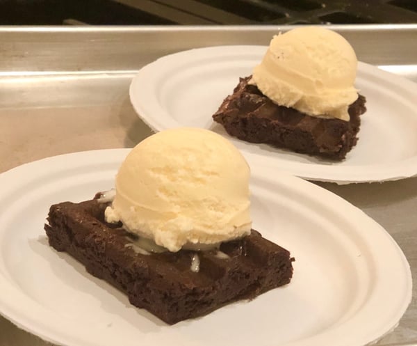Seems like everyone loves the crispy edge of a chewy brownie, so yes let's waffle it! This was a hands-down winner, and it did just what I wanted. Waffling it warmed the center and took my already crispy, chewy crust and made it just that much crispier and chewier. Topping that warm crispy brownie with ice cream took it over the edge!