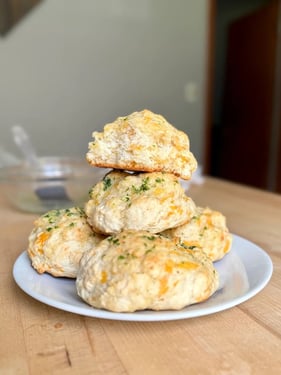 I tend to bake more in the cooler months. I'm also a biscuit lover. Since becoming a chef instructor at The Chopping Block a little over 2 years ago, I have learned a few different techniques for making biscuits. I decided to try a method which involves folding the dough in a similar manner to the way puff pastry and Croissant dough is made. I wanted to see if you really get a better rise out of the dough. For this test, I found a recipe online for inspiration.