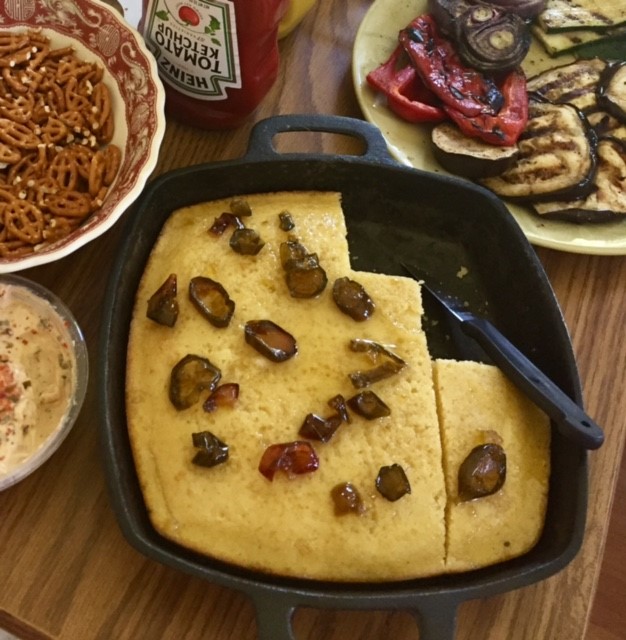 My favorite gourmet ingredient is Jalapeno Gold. It’s sweet, it’s spicy, and it’s unbelievably addictive. I’m a believer that it make everything taste better – pizza, burgers, cornbread, the list is really endless. It makes an appearance at nearly every gathering I have. This past Labor Day, we made cornbread, and spread it over the top. It was so good, I didn’t even get the chance to snap a picture of it while it was still whole!