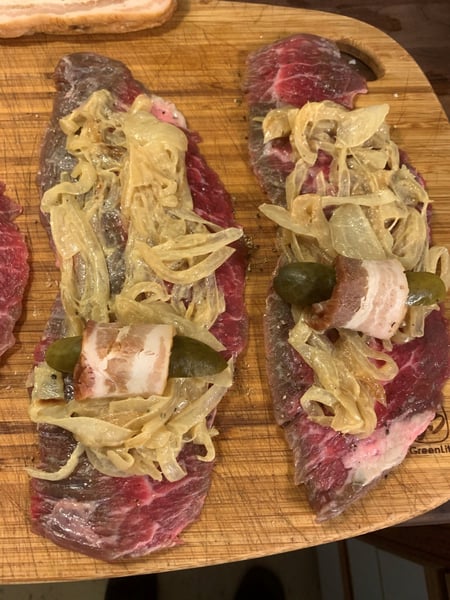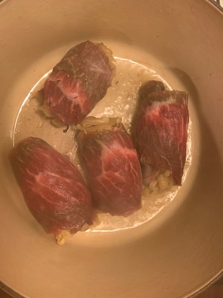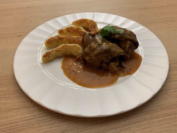 Beef Roulade (Rolled Flank Steak) and Schupfnudeln (Potato Noodles)