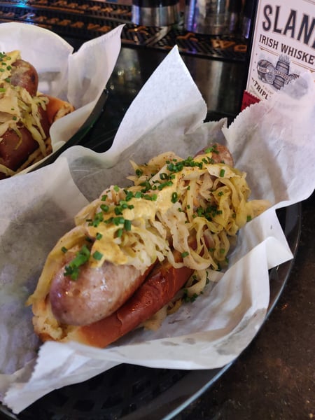 - Your choice of toppings and sauces (such as lettuce, tomato, pickle, mayonnaise, mustard, ketchup, barbecue sauce, honey mustard sauce, ranch dressing, etc.) My preferred toppings are pickles, chipotle aioli, and a spicy slaw.