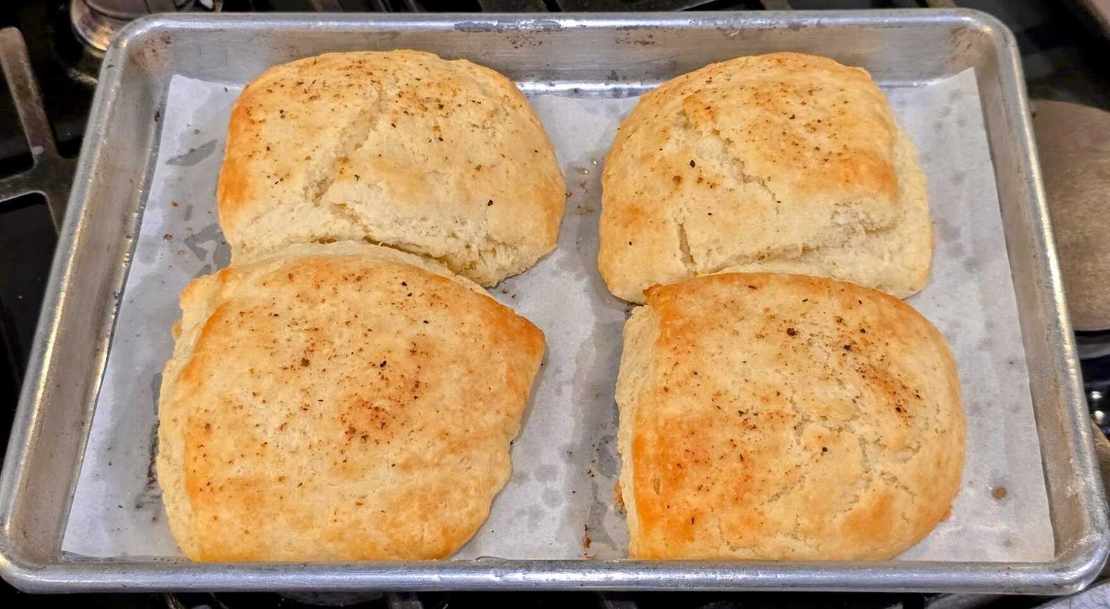 Now you have usable butter for toast, frying, or anywhere else you want butter! At this point, you can also add different seasonings to make a compound butter. This butter can be frozen for up to one month. We now have usable buttermilk as well. This buttermilk is lighter than the store bought stuff and has a real punchy taste that I like a lot. Well, when life (or cream for that matter) gives you butter and buttermilk, you just have to make homemade buttermilk biscuits!