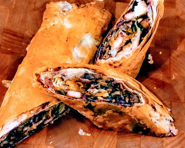 Another great way to utilize leftovers is to wrap them up in something. I know it seems simple, but it can be in the form of egg rolls, wontons, tacos, puff pastry bites, or you can turn to Phyllo dough, like I did.