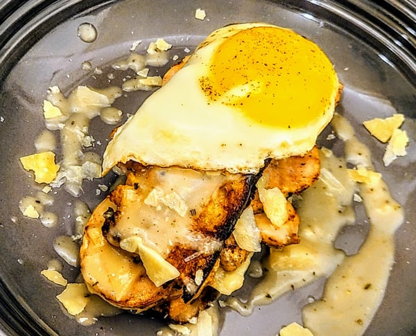 I decided I was going to make a variation of a Croque Madame, a classic French sandwich, that usually consists of griddled bread, sliced ham, gruyere cheese, béchamel sauce, and a fried egg.