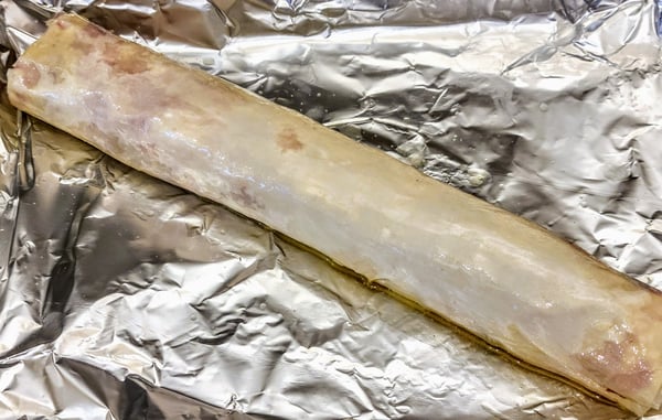 Once the Phyllo dough is all wrapped up, brush butter all over the top and sides and bake at 425° for about 20 minutes until the phyllo is golden brown on all sides.