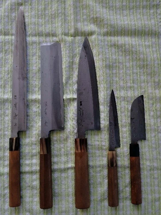 Over the years, the five knives Jon purchased were used occasionally, but not on any sort of regular basis. After we got married in 1998, I found them interesting and would pick one or two of them up once in a while, especially when I wanted to slice cleanly and accurately through a nice piece of fish. For the most part, though, they remained largely forgotten, at the back of our knife drawer.