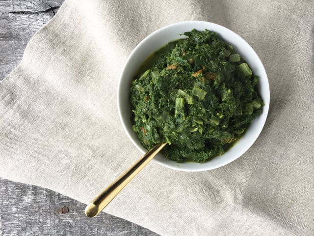Sarson ka Saag, a greens dish featured in Global Healing Kitchens: India