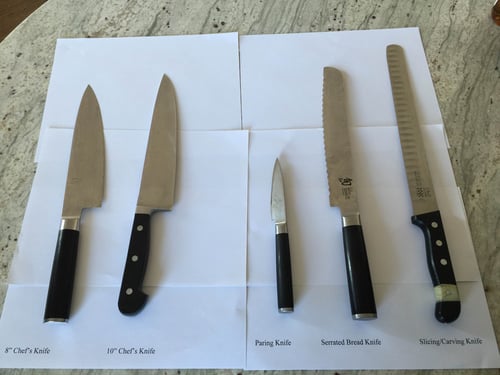 When you take an in-person class, we have a variety of different knives set up in our kitchen, so you are able to test drive different knives to see which fits you best. A knife is a very personal choice and what may work for your wife or husband may not be the same knife that you prefer.