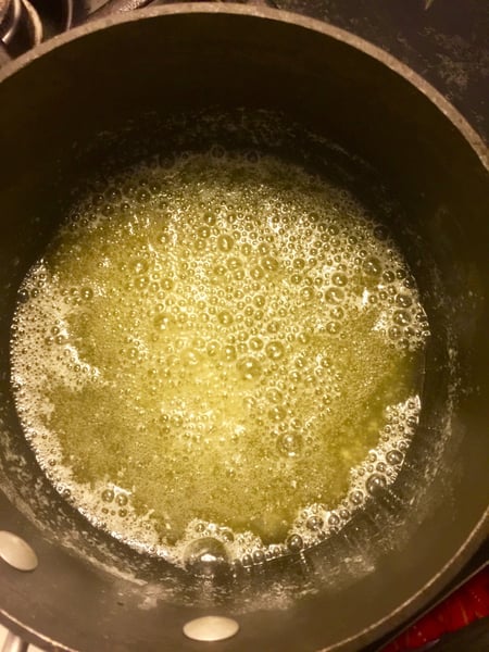 Once the butter is melted, bring to a boil. Stir often to keep the butter from burning. See how the butter becomes frothy.