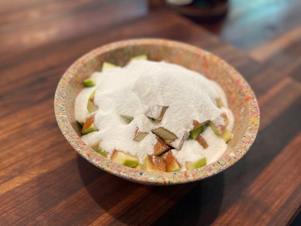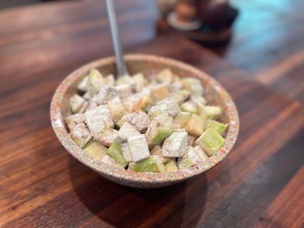 3. Toss the zucchini, flour, sugar, cinnamon, citric acid/lemon juice, vanilla, and salt in a large bowl to mix. Let sit while rolling dough.