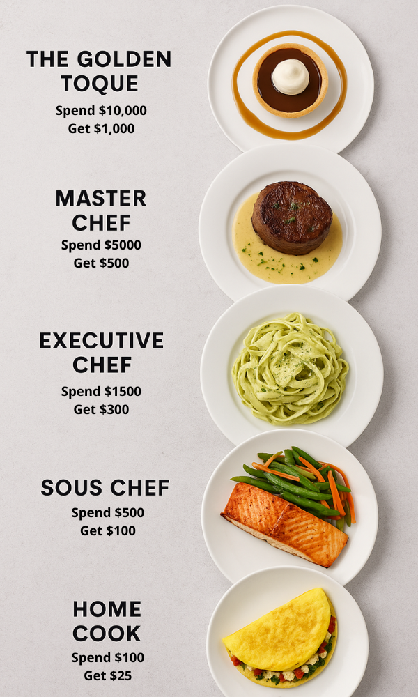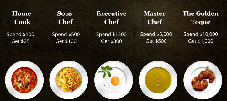Keep cooking, and your rewards will keep growing. Your total spend never resets - so taking more classes get you to the next reward faster.