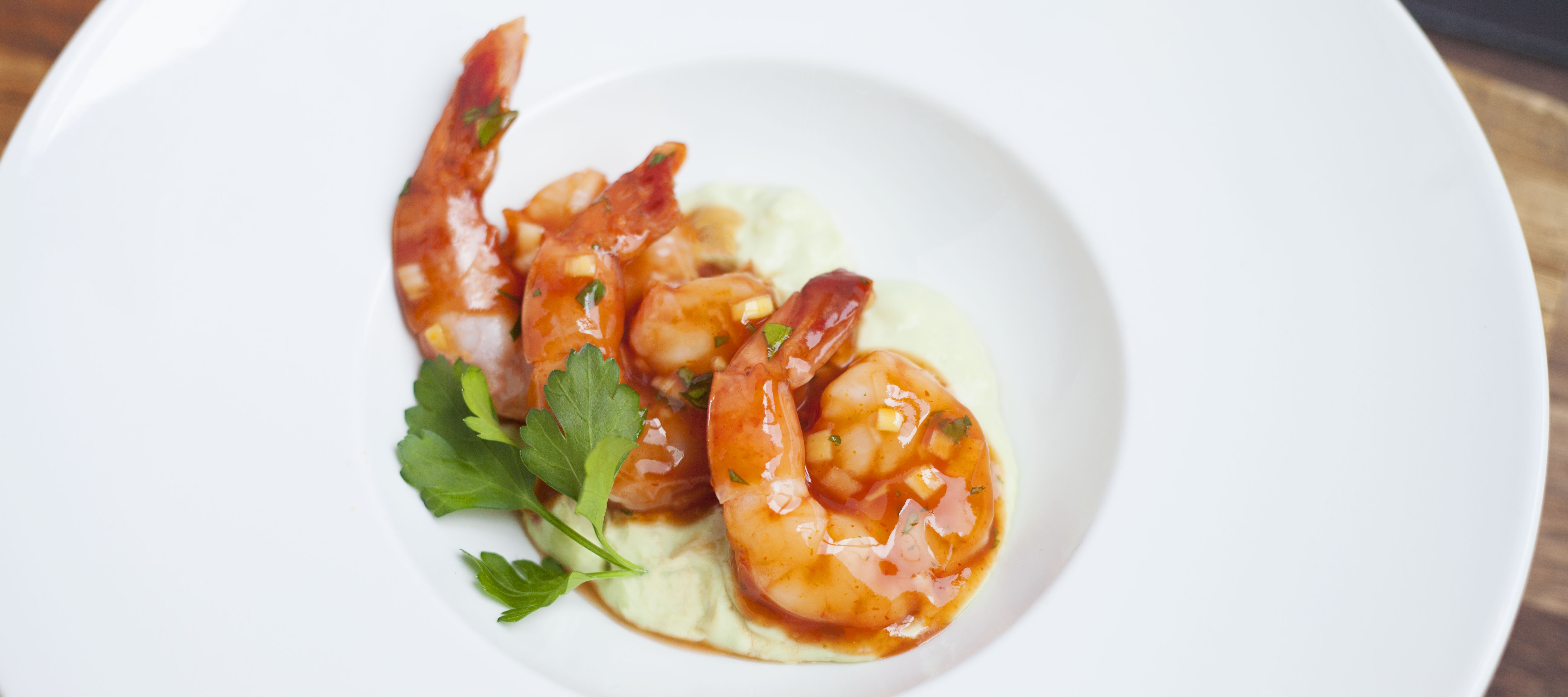 The cool, creamy, rich avocado sauce is the perfect pairing for fiery-hot cold poached shrimp.