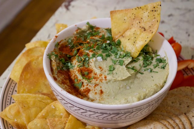 Process until smooth and season to taste. Dip with your favorite veggies, crackers, or tortilla chips. Enjoy this at a party or on the couch in your pajamas for some guilt-free indulgence.