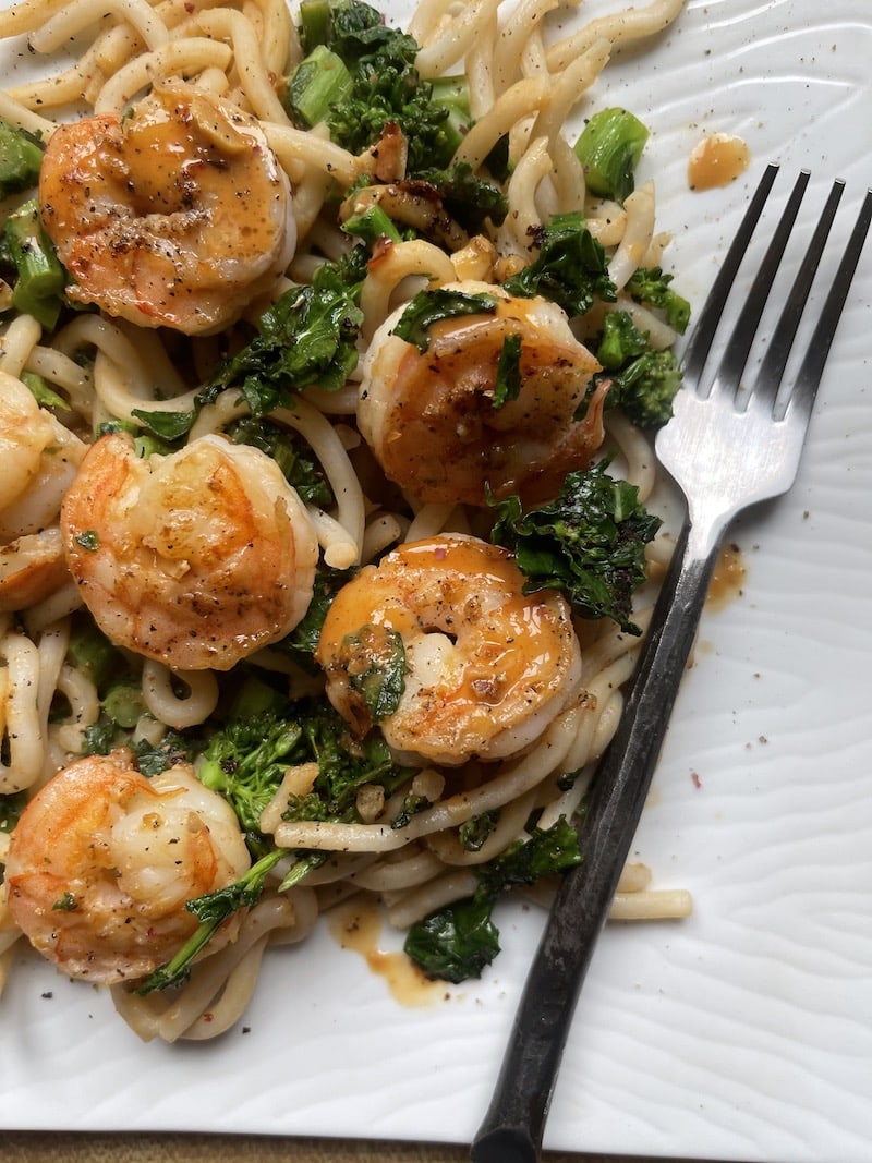 If you haven’t tried broccoli rabe before, I’d love for you to try this broccoli rabe and shrimp lo mein. It's a quick and easy healthy meal, perfect for just one!