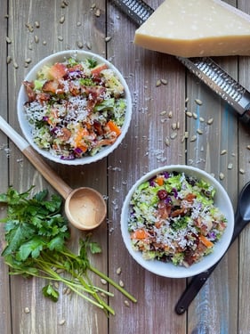 Broccoli rabe (also known as rapini) is not broccoli at all. In fact, it stems from the turnip green family, which is why it tends to have a bitter note to it. If you blanch the broccoli rabe in boiling water for one minute, then add to an ice bath, it makes for a milder flavor. It will still be slightly bitter, but not as much if you skip this step. My grocery store sells broccoli rabe near the Swiss chard, and it sells for .99 cents a pound, making it a super economical veggie.