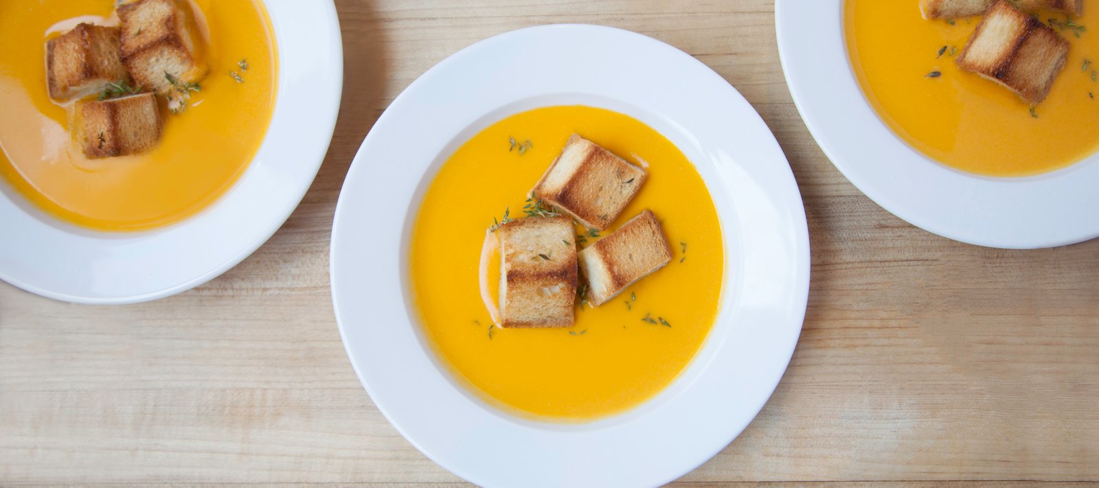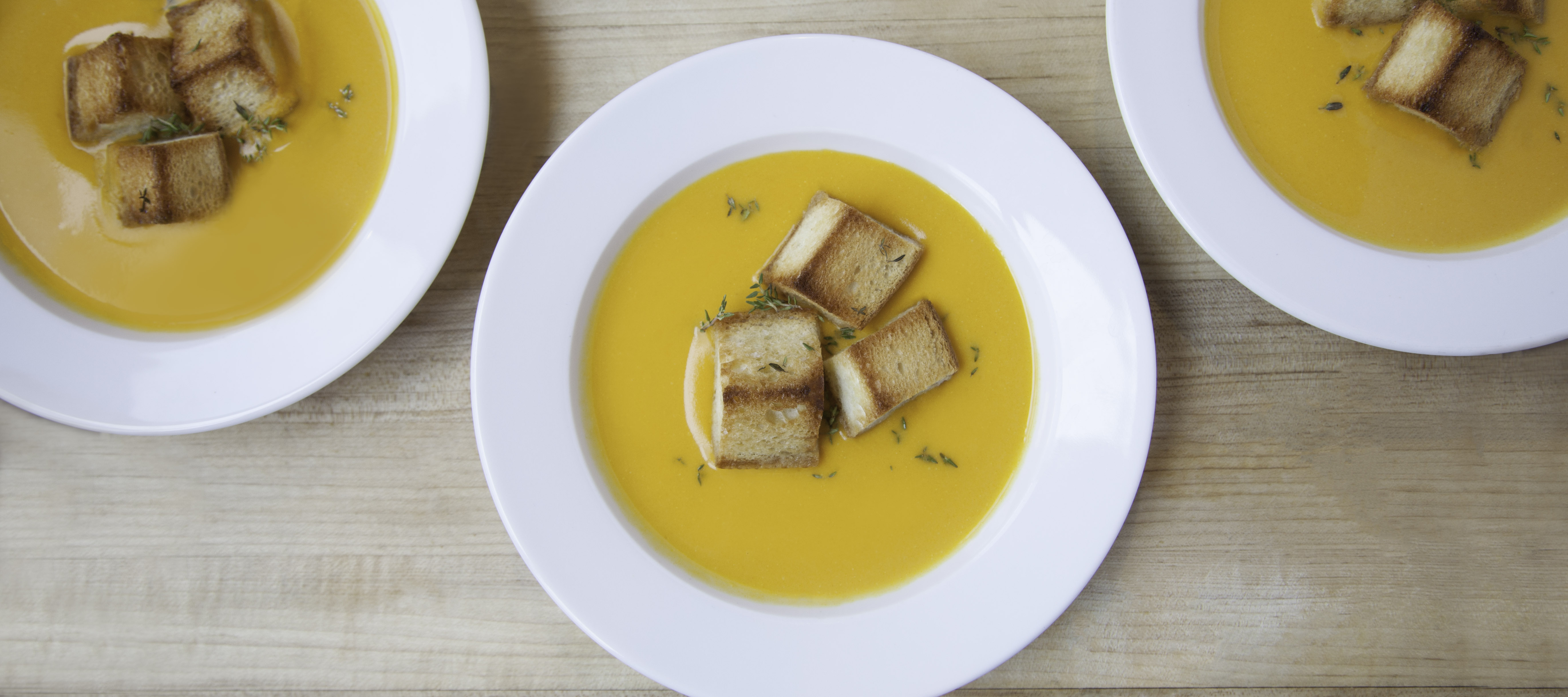 - Serve the soup in warmed bowls topped with Thyme Croutons.