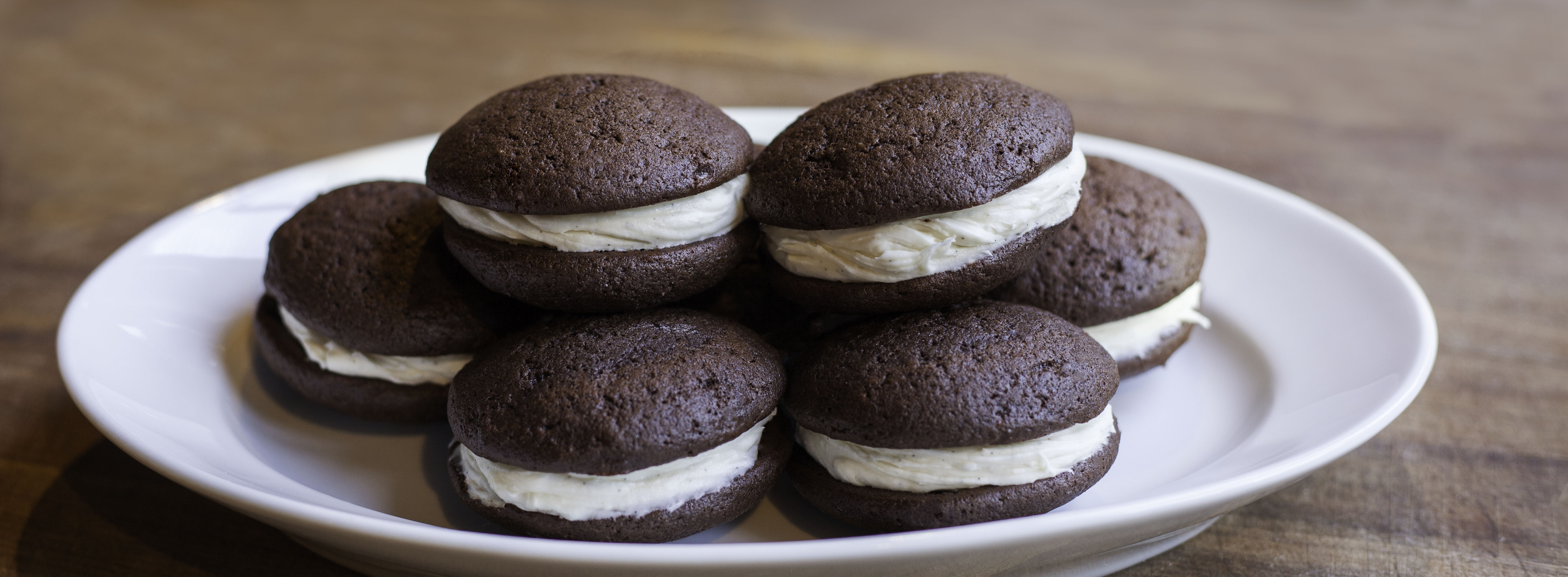 To assemble the whoopie pies, spread about 2 tablespoons of filling on the bottoms of halves of the pies, and sandwich them with the other halves.