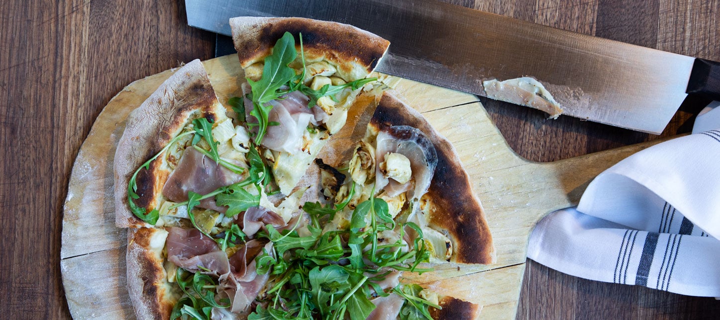 Neapolitan Pizza with Grilled Fennel, Artichokes and Prosciutto