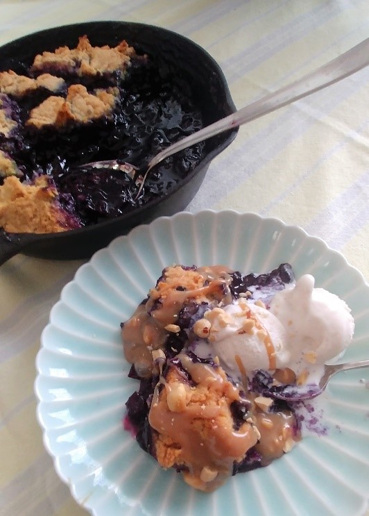 So, finally, a little cobbler, a little ice cream, a little bit of peanut sauce and an extra little sprinkle of chopped peanuts.