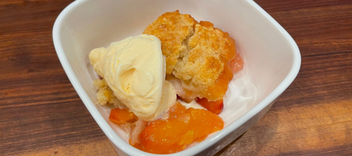 Serve warm or room temperature with a scoop of vanilla ice cream.