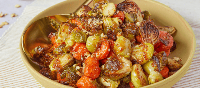 Roasted Brussels Sprouts and Carrots with Maple-Mustard Glaze