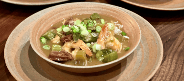 To serve, ladle the gumbo into a shallow bowl. Place a mound of steamed rice in the center of the bowl, and enjoy.