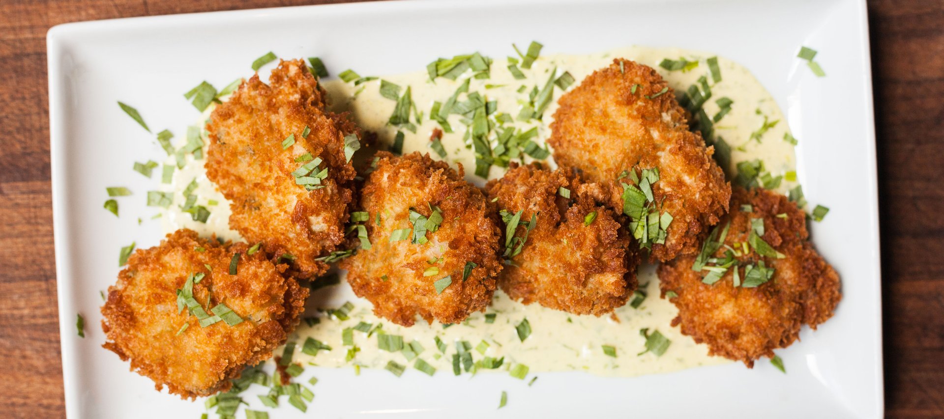 These golden, crispy shrimp fritters are infused with fresh herbs and served alongside a bright, creamy tarragon aioli for an elegant and flavorful appetizer.