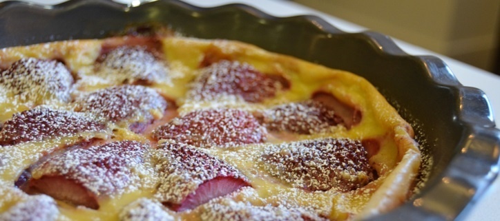 This classic French dessert involves pouring a batter over fresh fruit and baking until puffed and golden brown. The fruit rises to the top, leaving a soft layer with a texture that is slightly custard and slightly cake.