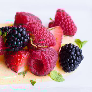 While the biscuits are baking, toss together the strawberries, 2 tablespoons sugar and mint. Allow to macerate at room temperature for at least 15 minutes.