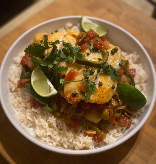 The key to this dish is layering flavors. First, sauté onions, garlic, and chilies to build a solid base. Then, add spices, tomatoes, and a touch of briny depth from olives and capers. Once the sauce comes together, the fish is placed on top and broiled until it’s just cooked through. It’s simple, but each step matters.
